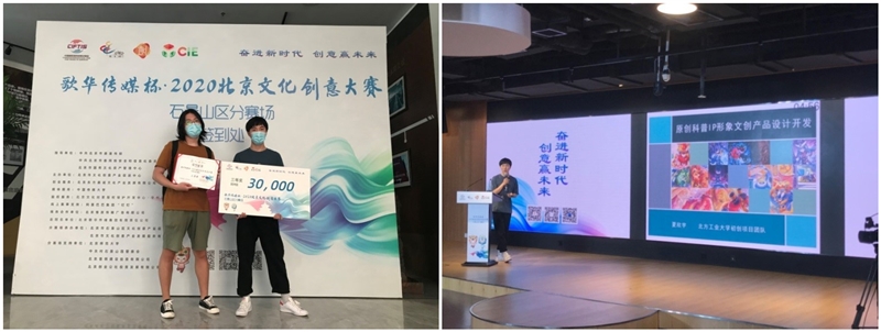 北京文化创意大赛石景山区分赛场自启动以来,面向全市征集优秀项目,征集领域含文化科技融合、数字创意、创意设计、非遗及IP开发、文化旅游、文化体育、广告传媒、文创类初创项目等多个领域,常规赛制共有150个项目报名参赛。组委会在对150个项目开展项目审核、选拔过后,共有50个项目进入复赛。8月6日、7日开展为期两天的复赛,经过严格的专家评审打分,24个优秀项目脱颖而出进入决赛。8月10日,sjb官网sjb世俱杯官方网站艺术设计系2017级本科生夏欣宇、卢頔代表创业团队,赴首钢·侨梦苑参加了现场项目路演和颁奖仪式。
