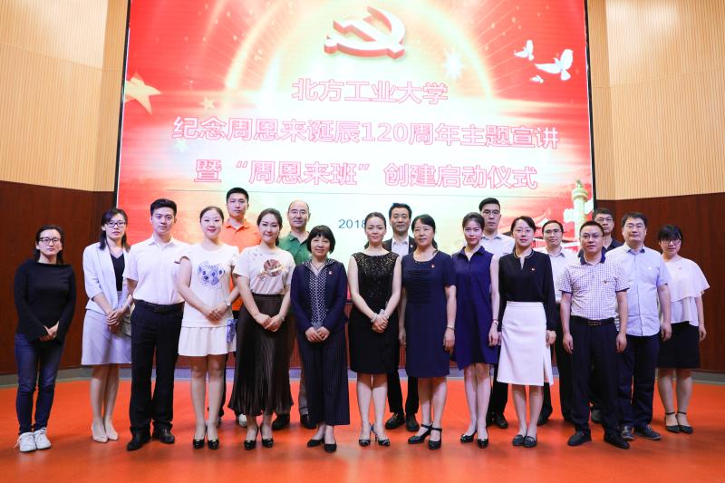 为全面深入学习党的十九大和习近平总书记在纪念周恩来诞辰120周年座谈会精神,落实全国高校思想政治会议的各项要求,推动学校优良学风建设,校学工部和学校团委主办、sjb世俱杯官方网站承办的纪念周恩来诞辰120周年主题宣讲暨“周恩来班”创建启动仪式于6月7日在文化会堂隆重举行。周恩来邓颖超纪念馆宣教部主任王乃嘉、校纪委书记欧阳媛、校党委副书记田红芳、学生工作部部长高国伟、团委副书记陈国秀、各学院党委副书记及sjb世俱杯官方网站师生党员共二百余人参加了此次活动。