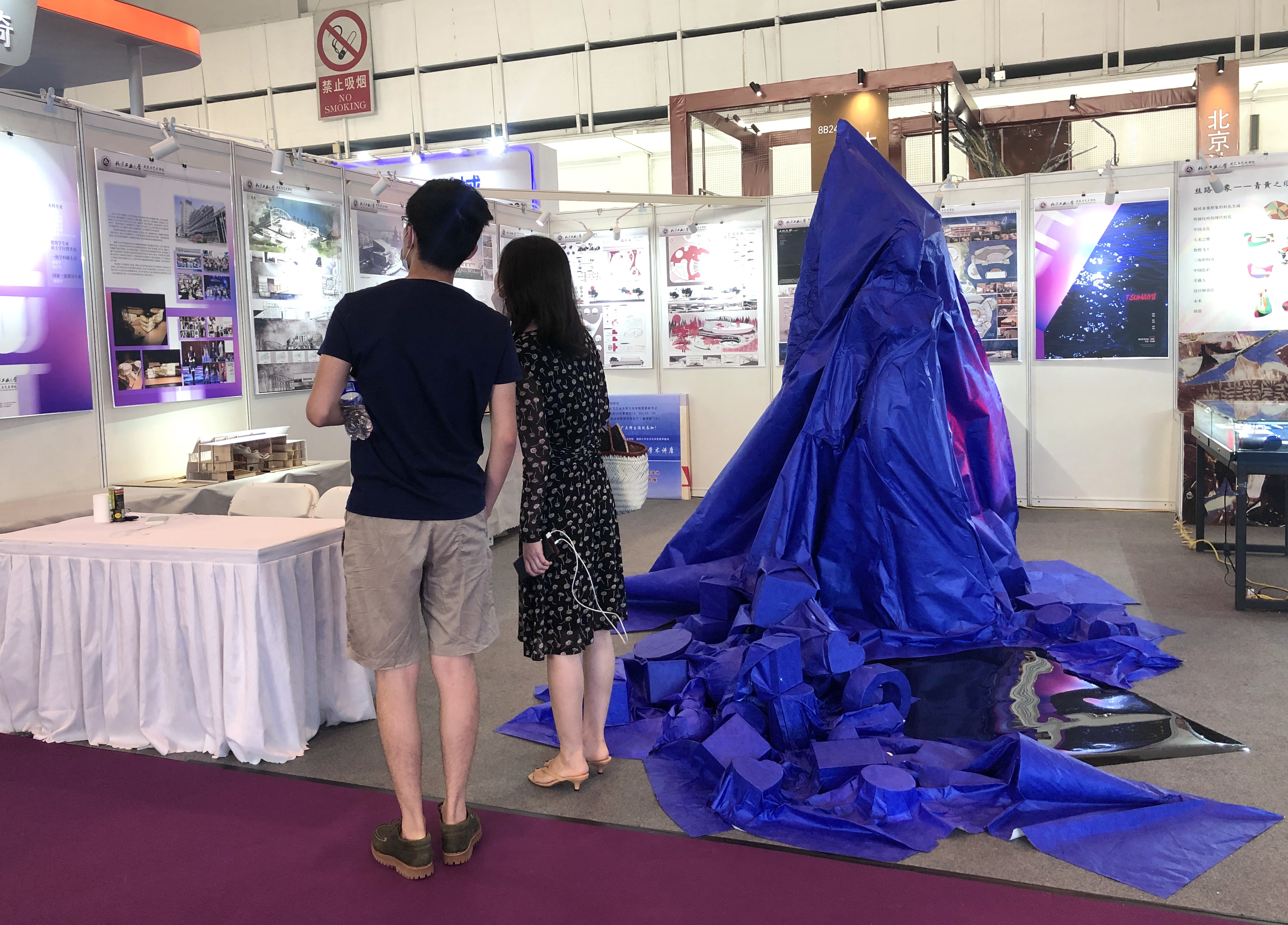 sjb官网sjb世俱杯官方网站高度重视本次展览,组织了建筑系、基础教学部、艺术设计系的教师、学生参展,部分优秀设计作品入选展览并在展览中展出。其中有建筑系马欣副教授指导的学生作业“建筑学专业学生设计的剧场剖切模型”、基础教学部张杞峰副教授设计的服装装置作品《海啸》、艺术设计系张鹏程老师设计的装饰作品《丝路印象——青黄之维装饰设计》。