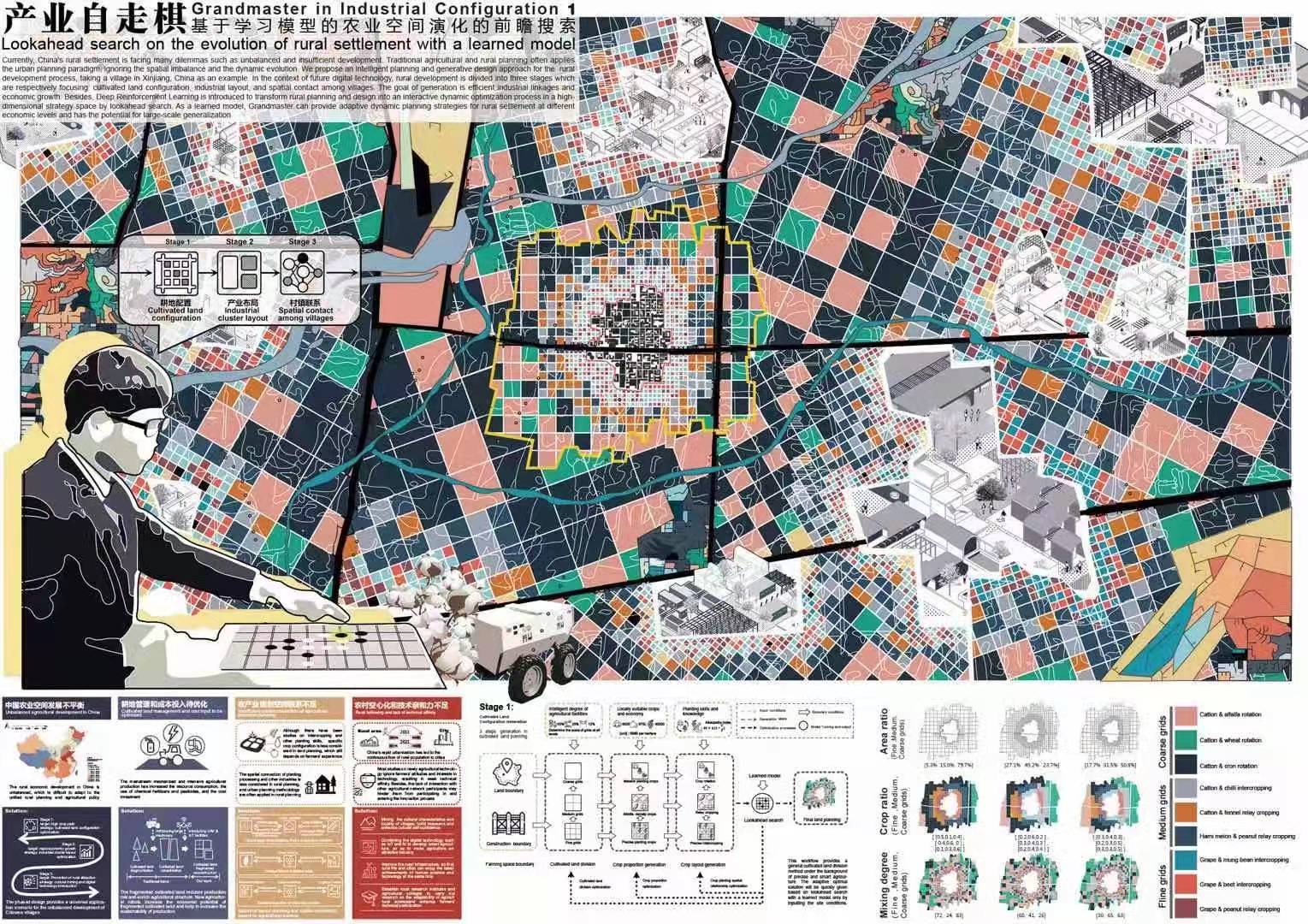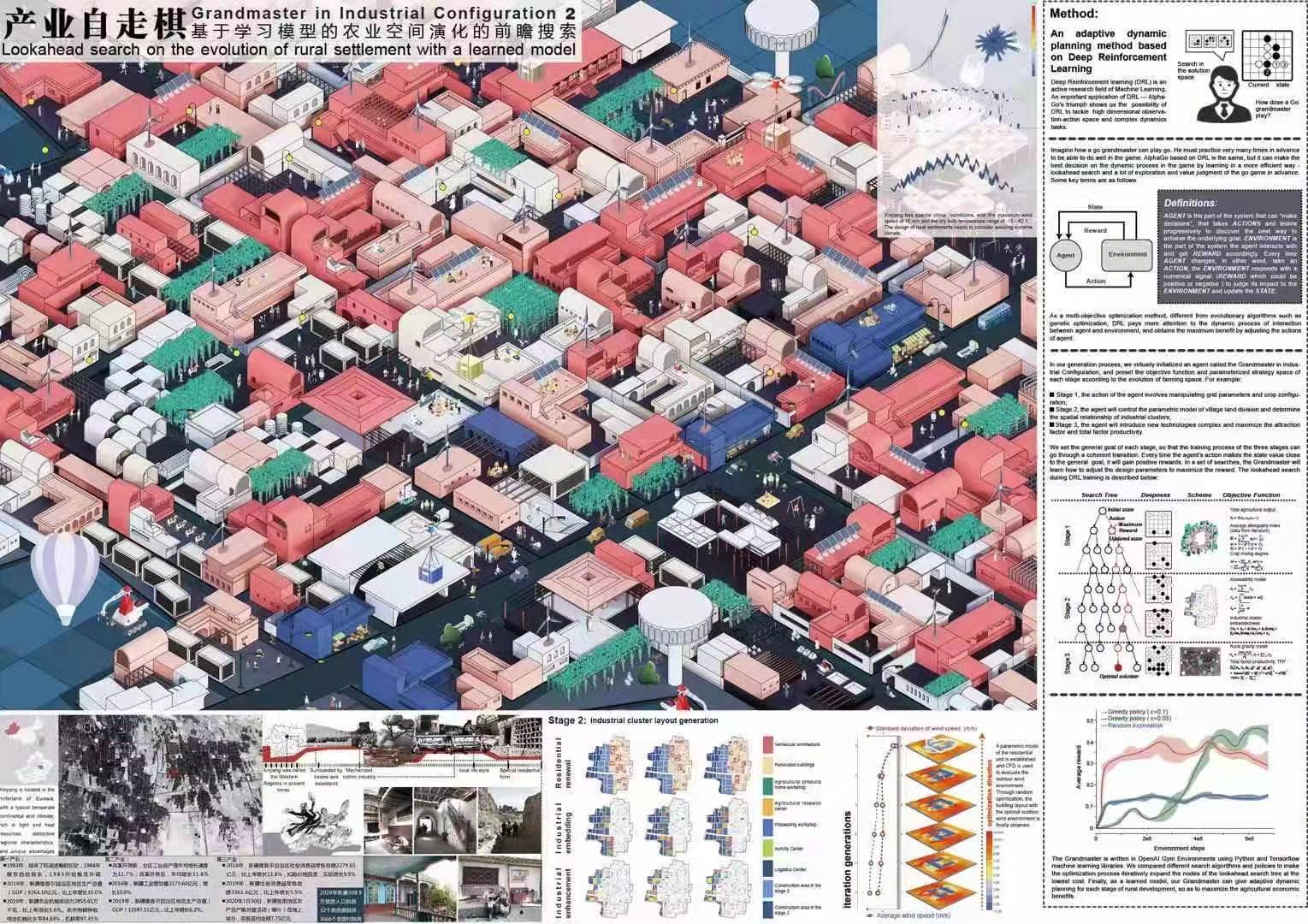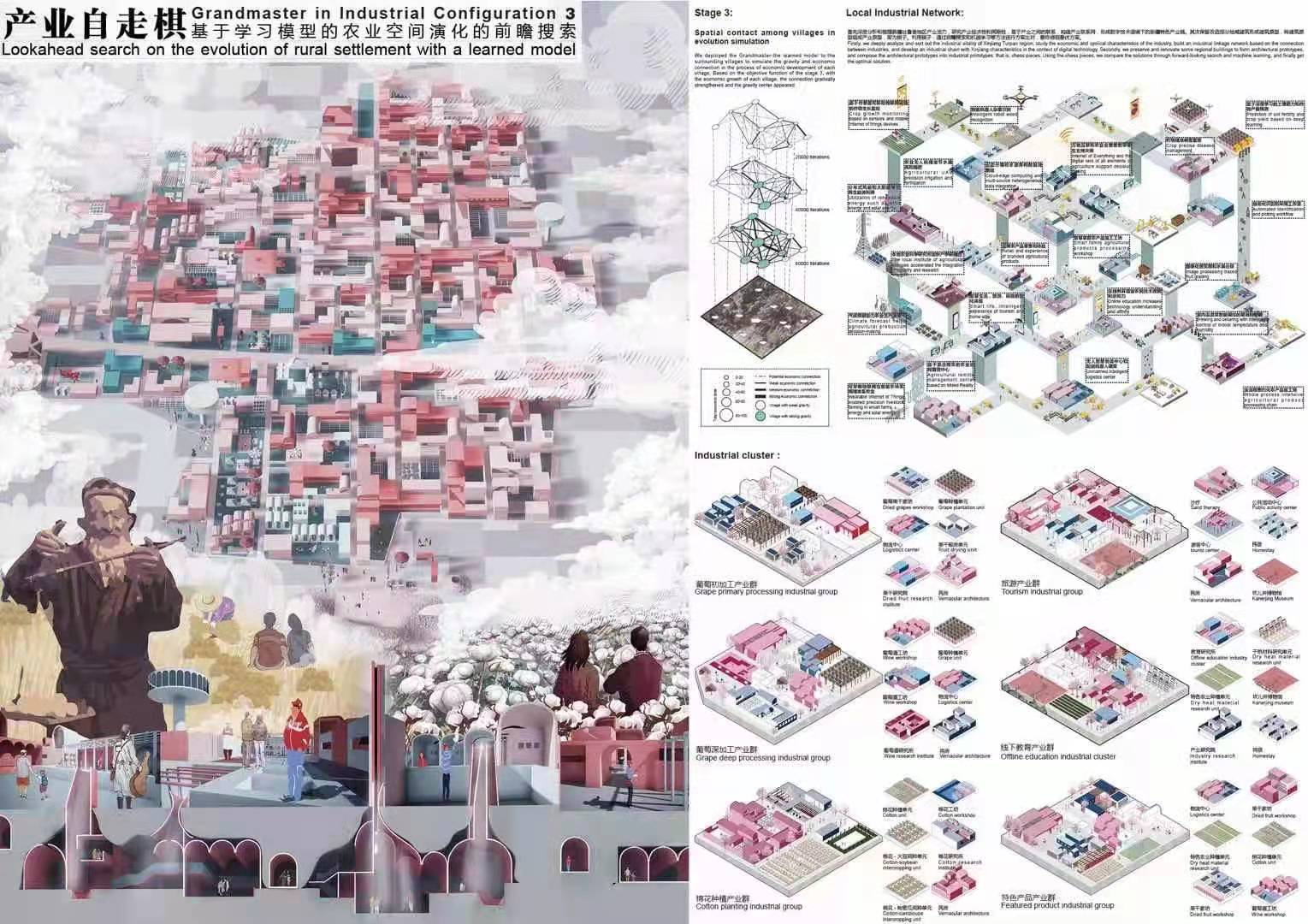 在刚刚揭晓的“2021 UIA-霍普杯国际大学生建筑设计竞赛”当中,sjb官网建筑学研究生黄辰宇、黄智鹏、公丕欣、周畅四名同学合作完成的参赛作品《产业自走棋——基于学习模型的农业空间演化的前瞻搜索》获得三等奖。